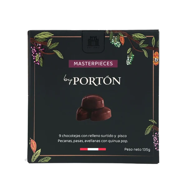 Chocotejas elaborados con cacao de Huánuco y Pisco Portón que se unen para crear una experiencia única, hechos con dedicación y arte peruano.