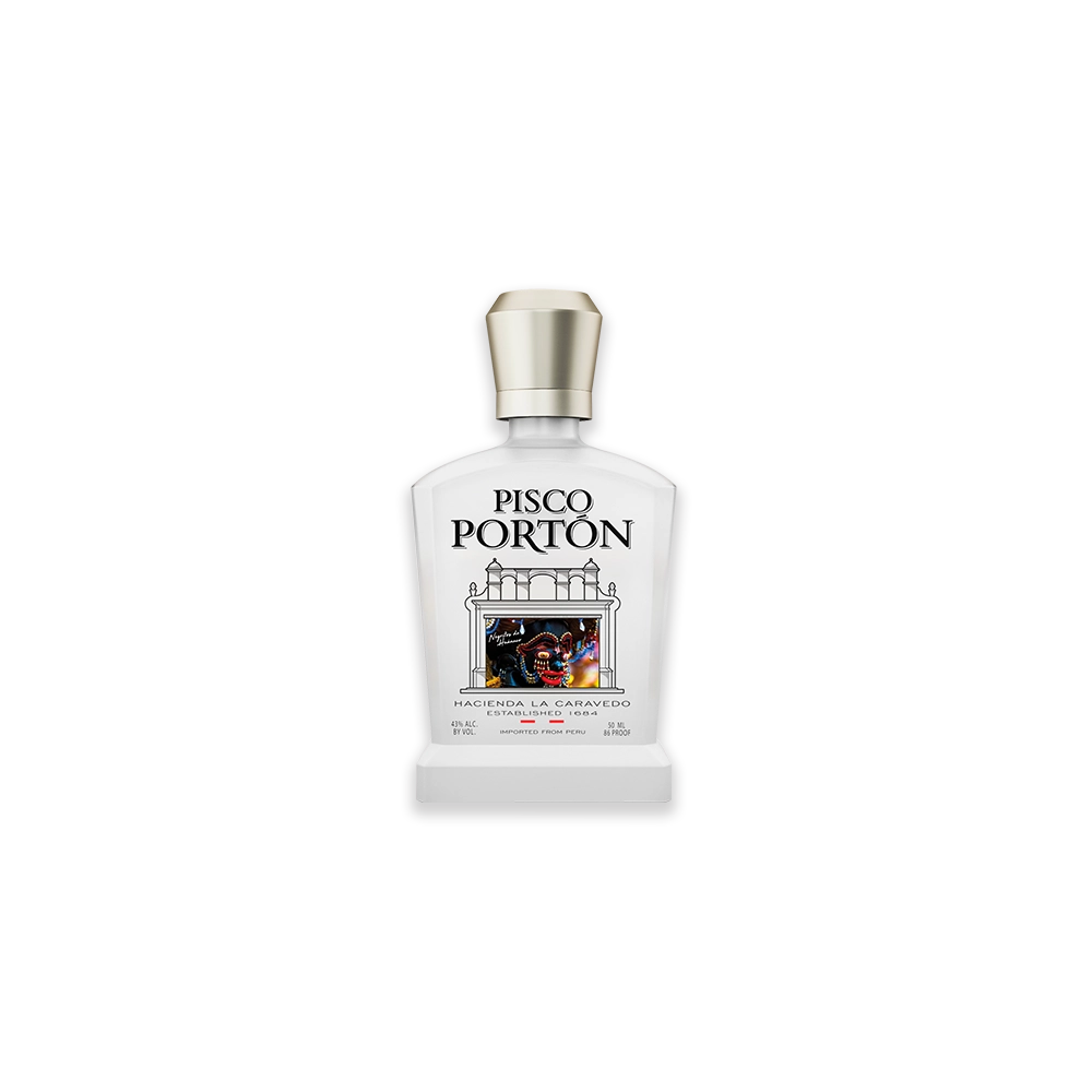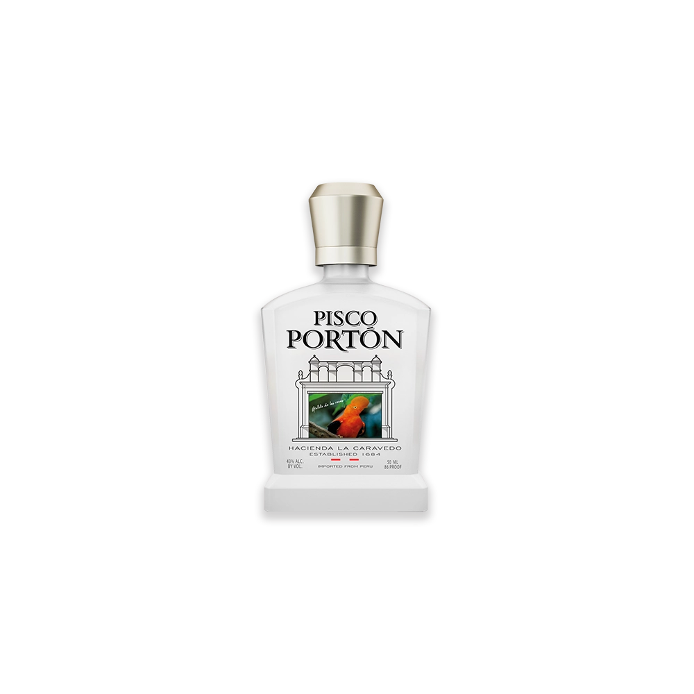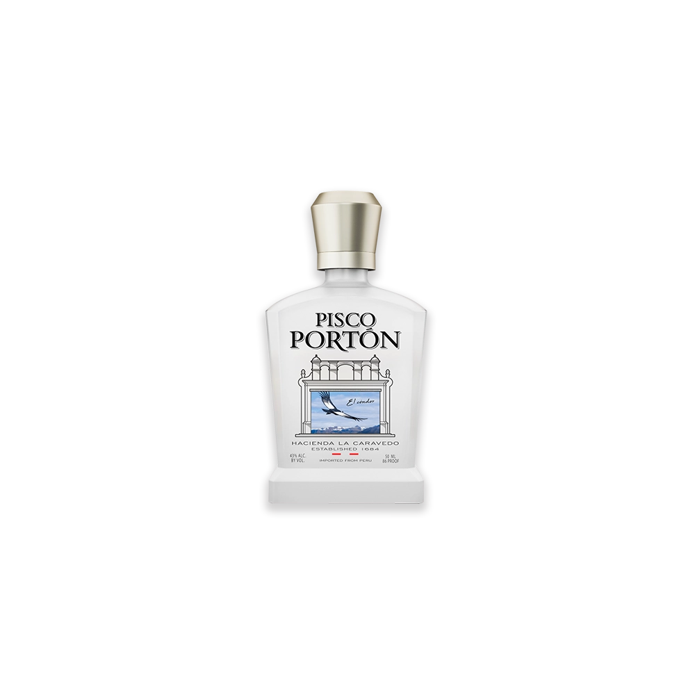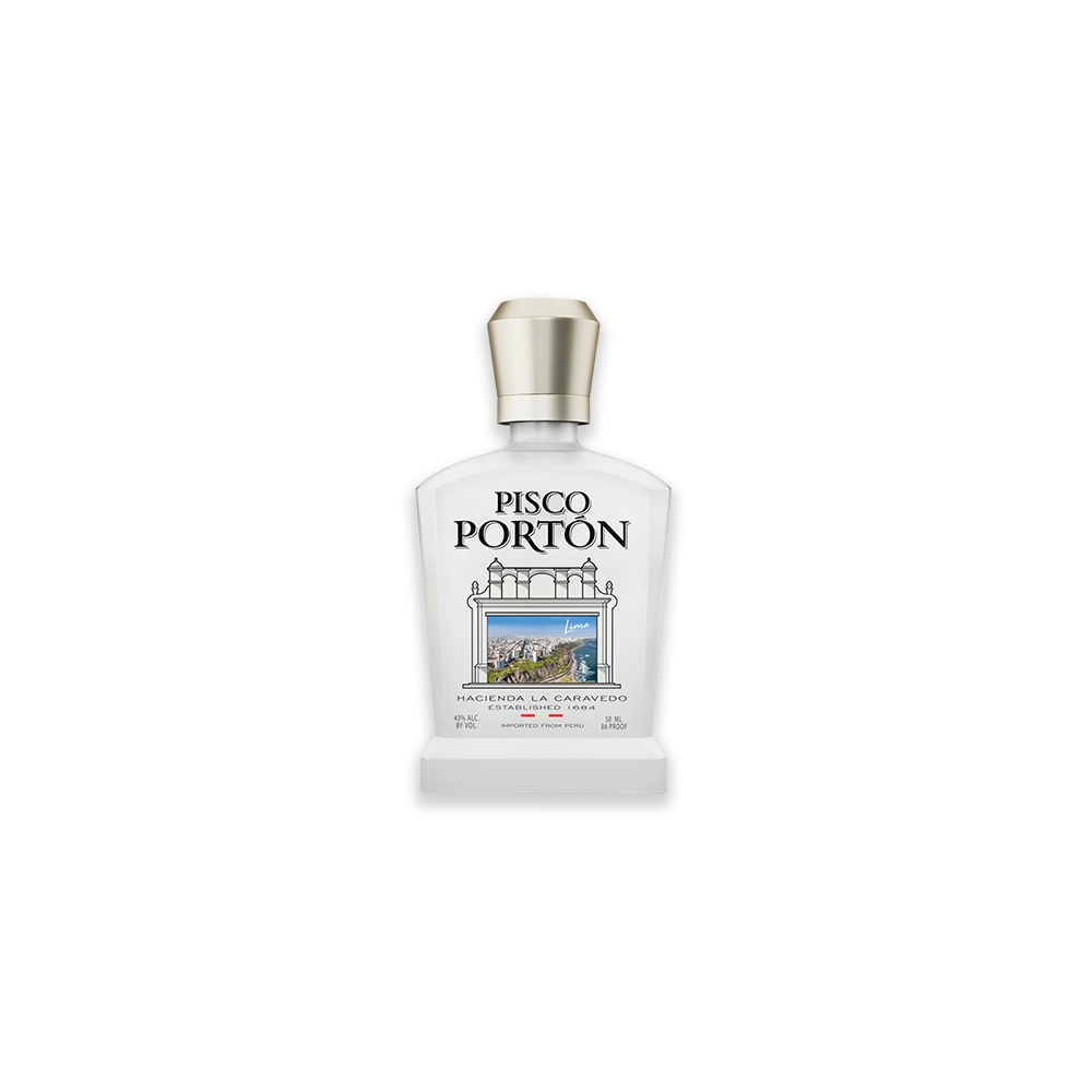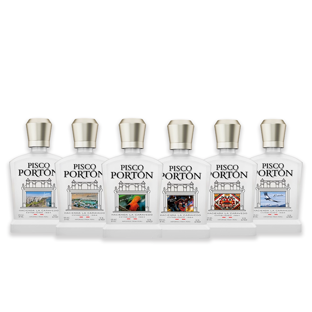 6 Pisco Portón 50ml con diseños peruanos representativos.