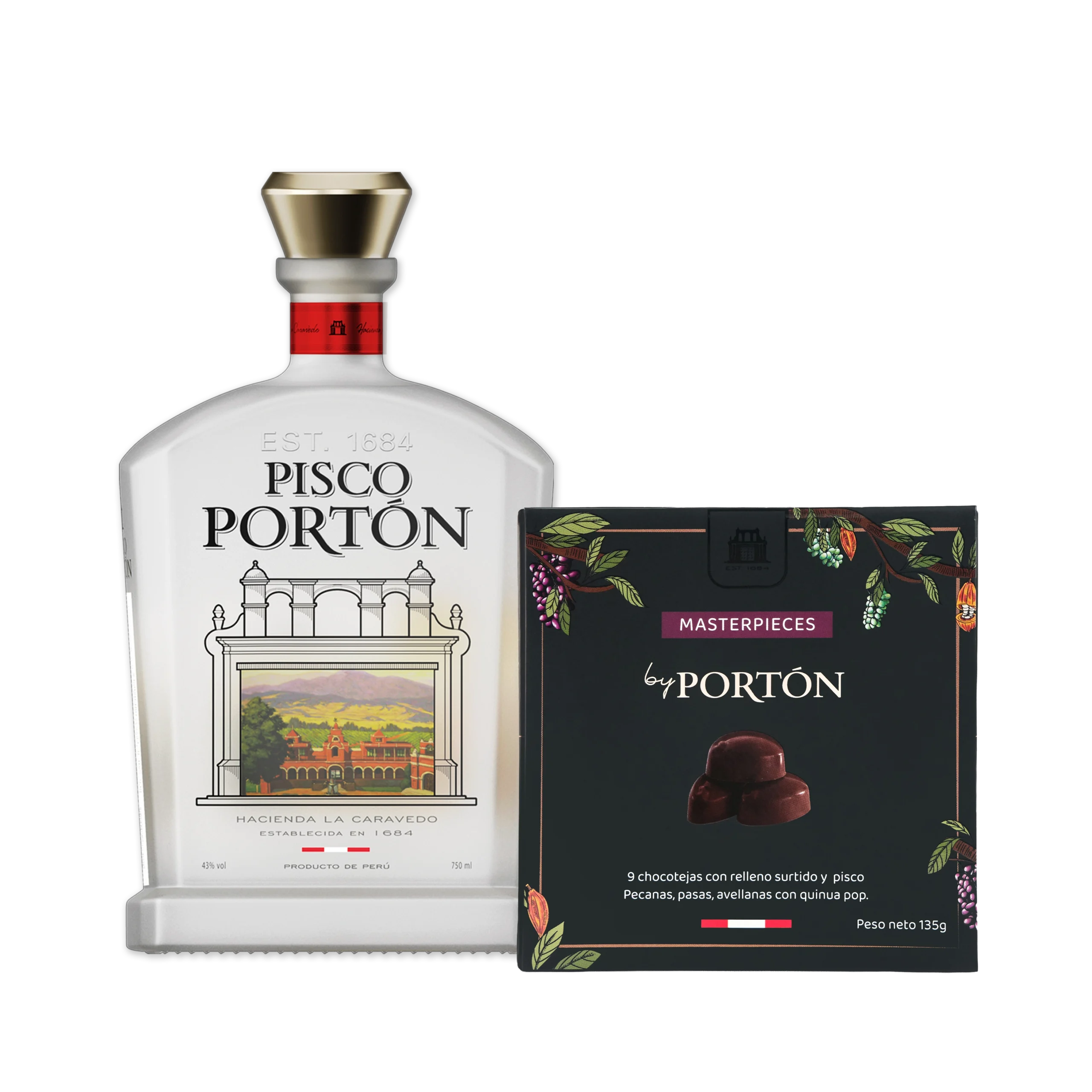 PISCO PORTÓN MOSTO VERDE 750 ML + Chocotejas masterpiece