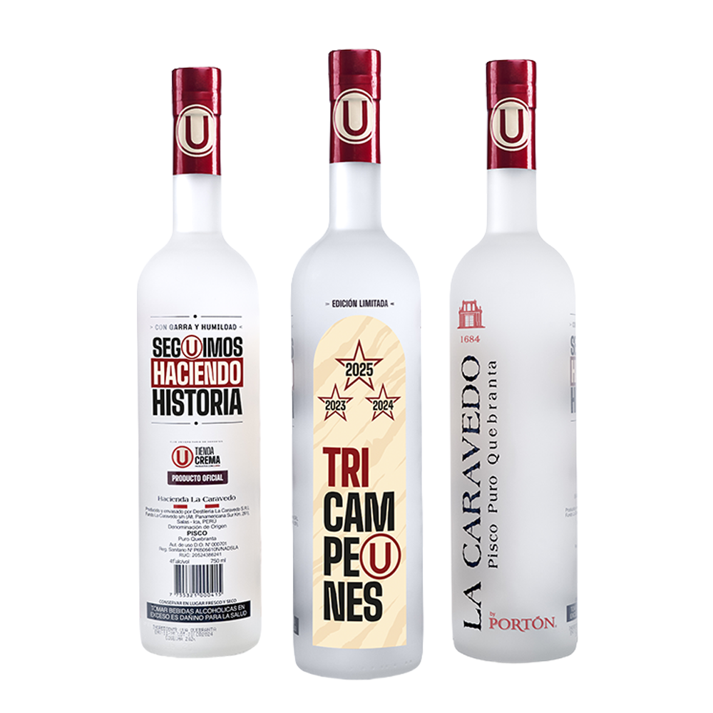 Pisco La Caravedo Edición Limitada “TRICAMPEONES” celebra la historia en cada copa. Un homenaje a la hinchada que alienta hasta el último minuto. ¡El brindis que sabe a victoria!